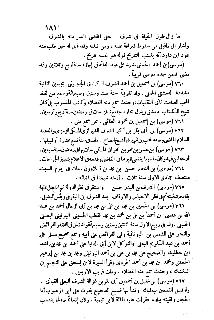 764 - مُوسَى بن النَّاصِر حسن بن مُحَمَّد بن قلاوون. / مَاتَ فِي يَوْم السبت منتصف جُمَادَى الأولى سنة ثَلَاث. أرخه شَيخنَا فِي إنبائه.