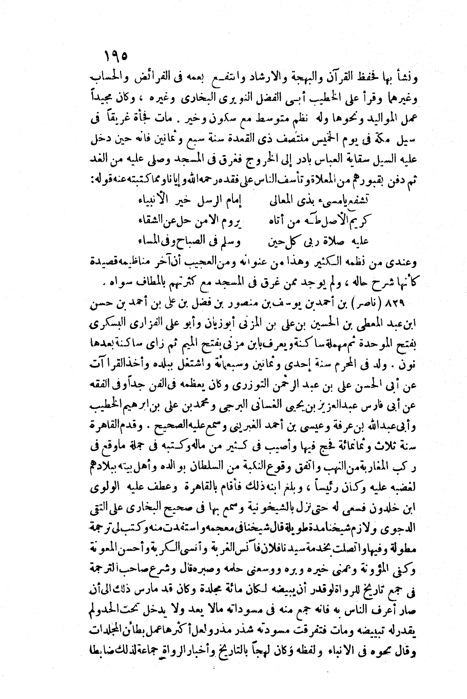 وَعِنْدِي من نظمه الْكثير وَهَذَا من عنوانه وَمن العجيب أَن آخر مناظيمه قصيدة كَأَنَّهَا شرح خَاله، وَلم يُوجد مِمَّن غرق فِي الْمَسْجِد مَعَ كثرتهم بالمطاف سواهُ.