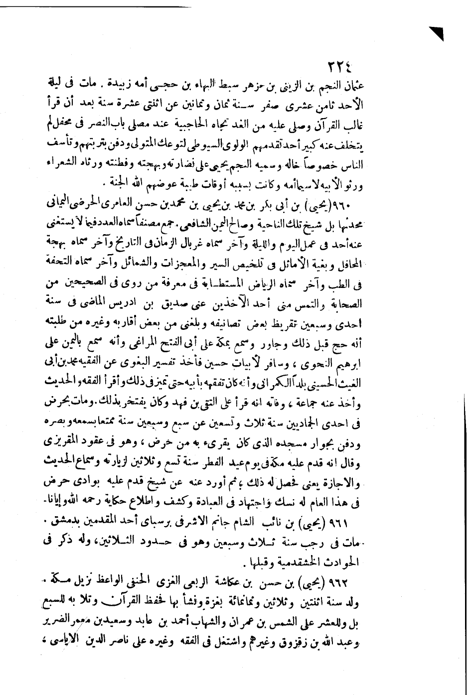 962 - يحيى بن حسن بن عكاشة الربعِي الْغَزِّي الْحَنَفِيّ الْوَاعِظ نزيل مَكَّة. / ولد سنة اثْنَتَيْنِ وَثَلَاثِينَ ونمانمائة بغزة وَنَشَأ بهَا فحفظ الْقُرْآن وتلا بِهِ للسبع بل وللعشر على الشَّمْس بن عمرَان والشهاب أَحْمد بن عَابِد وَسَعِيد بن معمر الضَّرِير وَعبد الله بن زقزوق وَغَيرهم واشتغل فِي الْفِقْه وَغَيره على نَاصِر الدّين الأياسي،