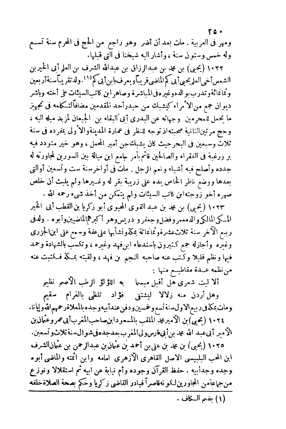 1023 - يحيى بن مُحَمَّد بن عبد الْقوي المحيوي أَبُو زَكَرِيَّا بن القطب أبي الْخَيْر الْمَكِّيّ الْمَالِكِي وَالِد معمر وَفضل وجعفر ودريس / وَهُوَ أكبرهم الماضيين وَأَبوهُ. ولد فِي ربيع الآخر)