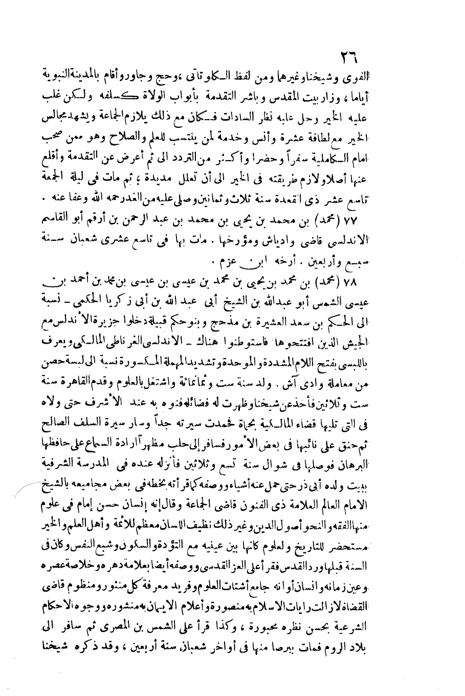 78 - مُحَمَّد بن مُحَمَّد بن يحيى بن مُحَمَّد بن عِيسَى بن عِيسَى بن مُحَمَّد بن أَحْمد بن عِيسَى الشَّمْس أَبُو عبد الله بن الشَّيْخ أبي عبد الله بن أبي زَكَرِيَّا الْحكمِي / نِسْبَة إِلَى الحكم بن سعد الْعَشِيرَة بن مذْحج وَبَنُو حكم قَبيلَة دخلُوا جَزِيرَة الأندلس مَعَ الْجَيْش الَّذين افتتحوها فاستوطنوا هُنَاكَ الأندلسي الغرناطي الْمَالِكِي وَيعرف باللبسي بِفَتْح اللَّام الْمُشَدّدَة وَالْمُوَحَّدَة وَتَشْديد)