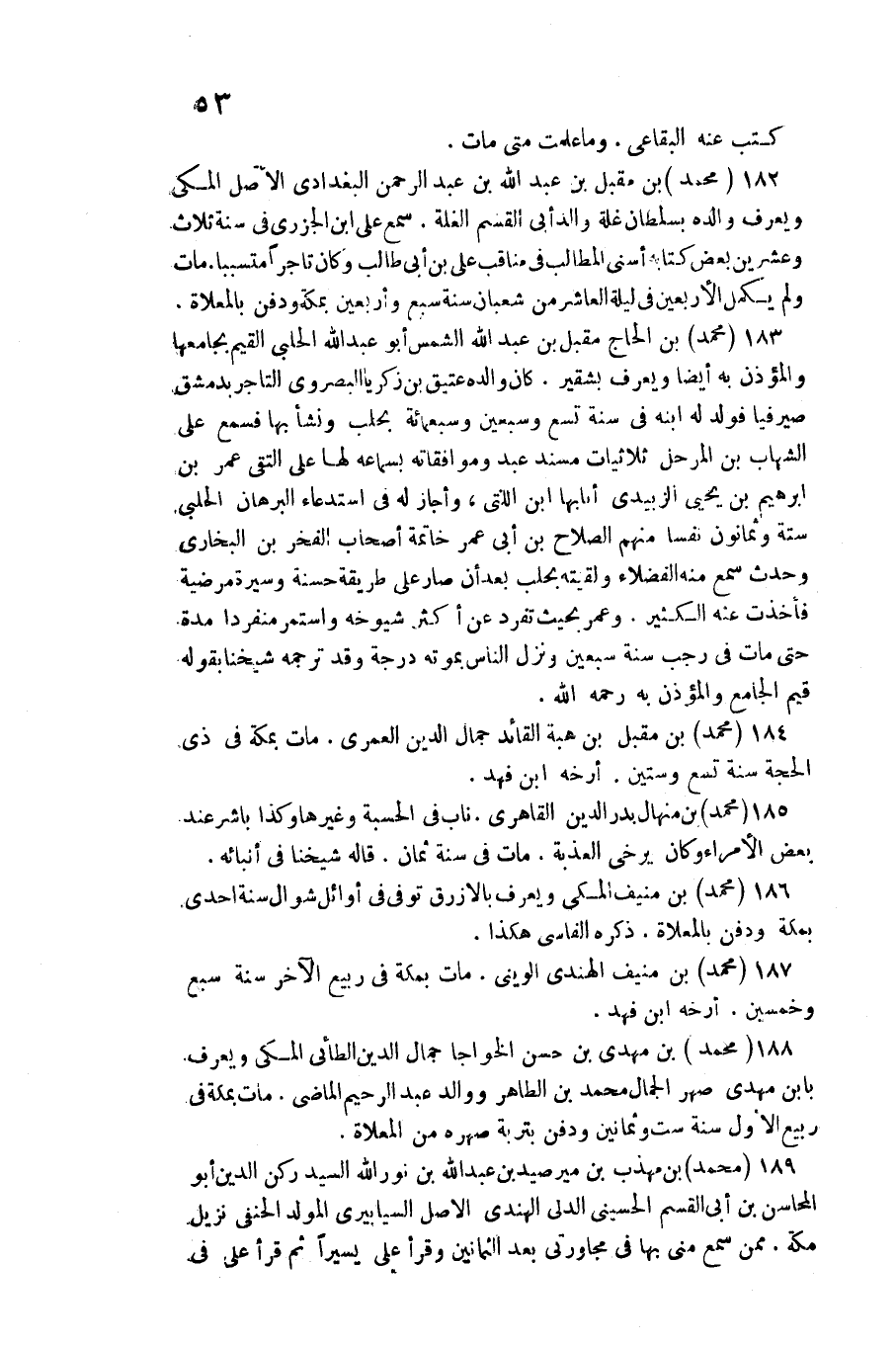 187 - مُحَمَّد بن منيف الْهِنْدِيّ الويني. / مَاتَ بِمَكَّة فِي ربيع الآخر سنة سبع وَخمسين. أرخه ابْن فَهد.