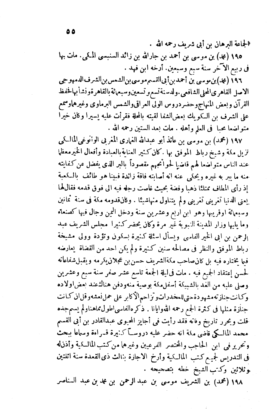 195 - مُحَمَّد بن مُوسَى بن أَحْمد بن جَار الله بن زَائِد السنبسي الْمَكِّيّ. / مَاتَ بهَا فِي ربيع)