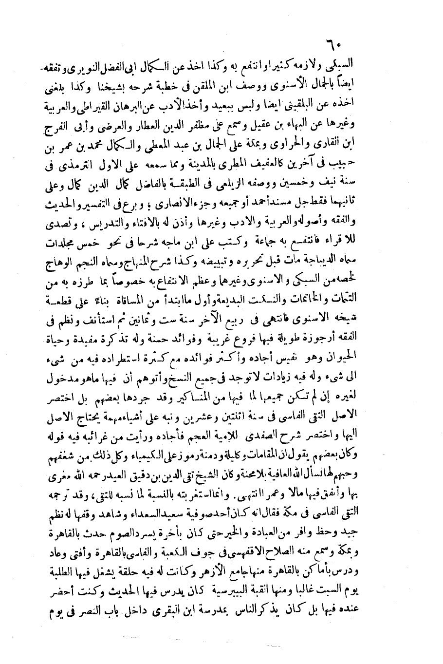 انْتهى. وَإِنَّمَا استغربته بِالنِّسْبَةِ لما نسبه للتقي، وَقد تَرْجمهُ التقي الفاسي فِي مَكَّة فَقَالَ أَنه كَانَ أحد صوفية سعيد السُّعَدَاء وَشَاهد وَقفهَا لَهُ نظم جيد وحظ وافر من الْعِبَادَة وَالْخَيْر حَتَّى كَانَ بِأخرَة يسْرد الصَّوْم حدث بِالْقَاهِرَةِ وبمكة وَسمع مِنْهُ الصّلاح الأقفهسي فِي جَوف الْكَعْبَة والفاسي بِالْقَاهِرَةِ وَأفْتى وَعَاد ودرس بأماكن بِالْقَاهِرَةِ مِنْهَا جَامع الْأَزْهَر وَكَانَت لَهُ فِيهِ حَلقَة يشغل فِيهَا الطّلبَة يَوْم السبت غَالِبا وَمِنْهَا الْقبَّة البيبرسية كَانَ يدرس فِيهَا الحَدِيث وَكنت أحضر عِنْده فِيهَا بل كَانَ يذكر النَّاس بمدرسة ابْن البقري دَاخل بَاب النَّصْر فِي يَوْم