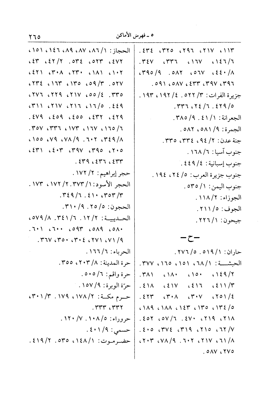 الحجاز: 1/ 86، 87، 89، 146، 151، 472، 523، 534. 2/ 42، 43،