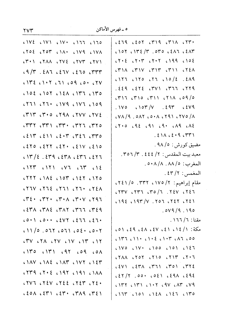 مكة: 1/ 14، 41، 47، 48، 49، 51، 55، 86، 103، 104، 110، 136، 146، 151، 155، 170، 175، 206، 213، 215، 252، 288، 324، 351، 361، 438، 471، 494، 498، 541، 550. 2/ 42،