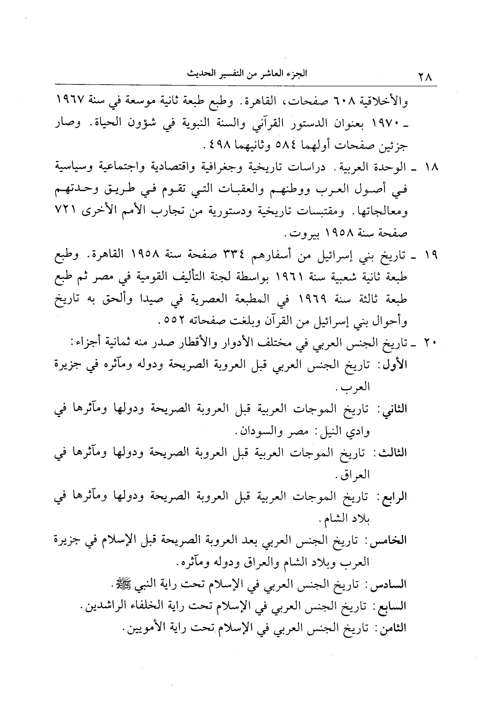 20- تاريخ الجنس العربي في مختلف الأدوار والأقطار صدر منه ثمانية أجزاء:
