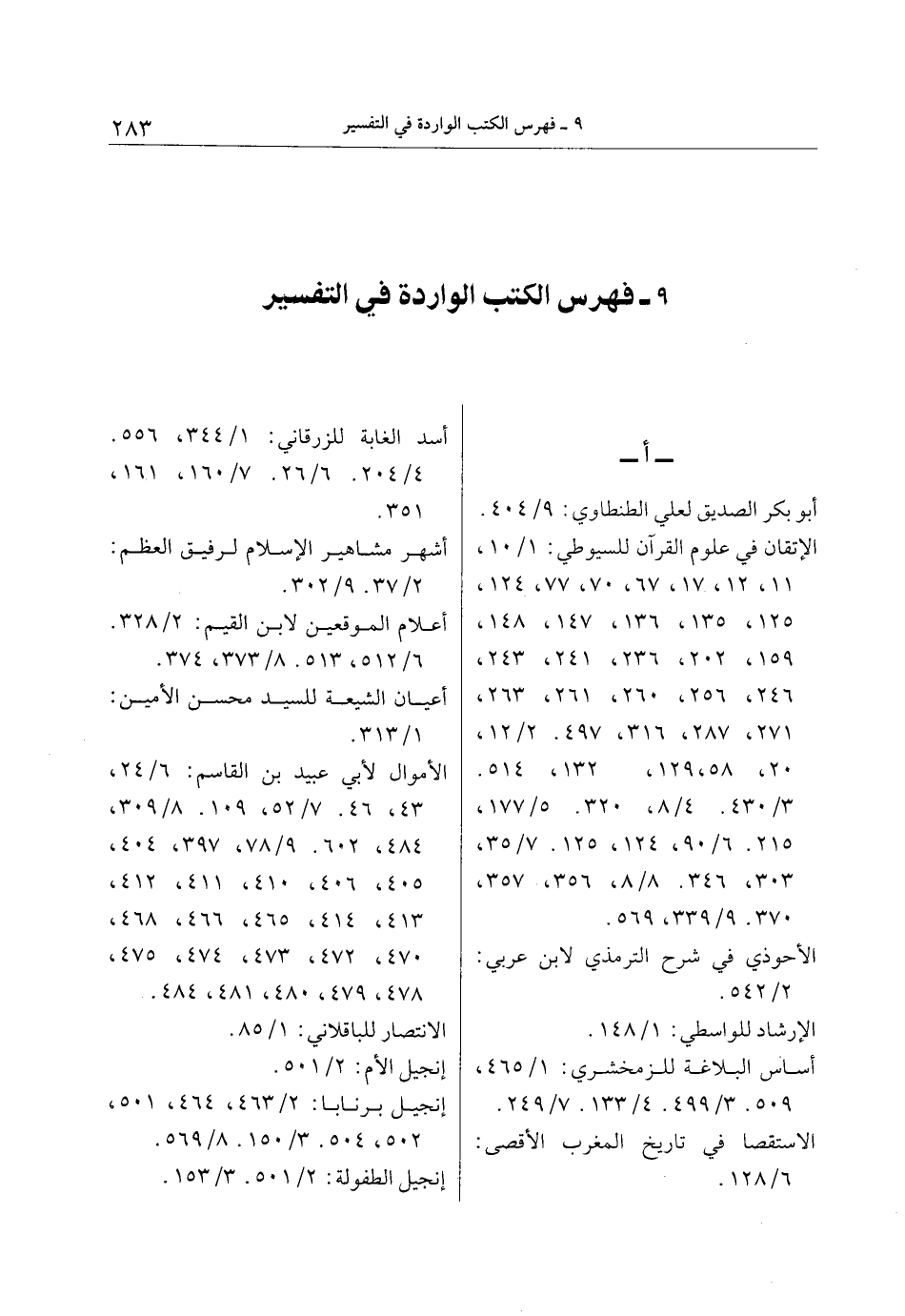 9- فهرس الكتب الواردة في التفسير