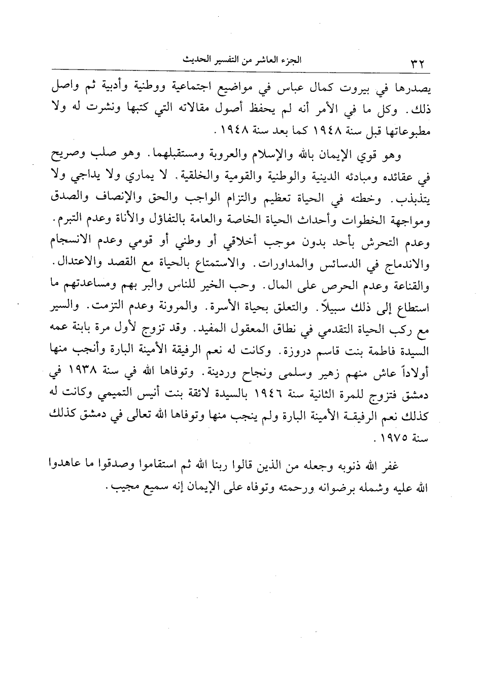 وهو قوي الإيمان بالله والإسلام والعروبة ومستقبلهما. وهو صلب وصريح في عقائده ومبادئه الدينية والوطنية والقومية والخلقية. لا يماري ولا يداجي ولا يتذبذب. وخطته في الحياة تعظيم والتزام الواجب والحق والإنصاف والصدق ومواجهة الخطوات وأحداث الحياة الخاصة والعامة بالتفاؤل والأناة وعدم التبرم.