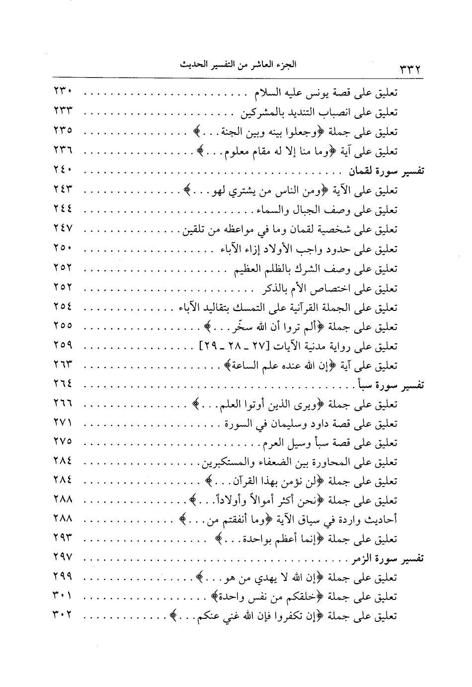 تعليق على رواية مدنية الآيات [27- 28- 29] 259 تعليق على آية إِنَّ اللَّهَ عِنْدَهُ عِلْمُ السَّاعَةِ 263 تفسير سورة سبأ 264 تعليق على جملة وَيَرَى الَّذِينَ أُوتُوا الْعِلْمَ ... 266