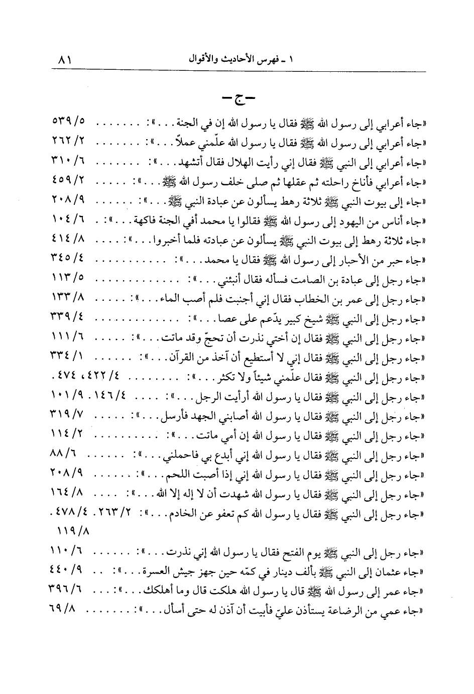 «جاء أعرابي إلى رسول الله صلّى الله عليه وسلم فقال يا رسول الله علّمني عملا ... » : 2/ 262