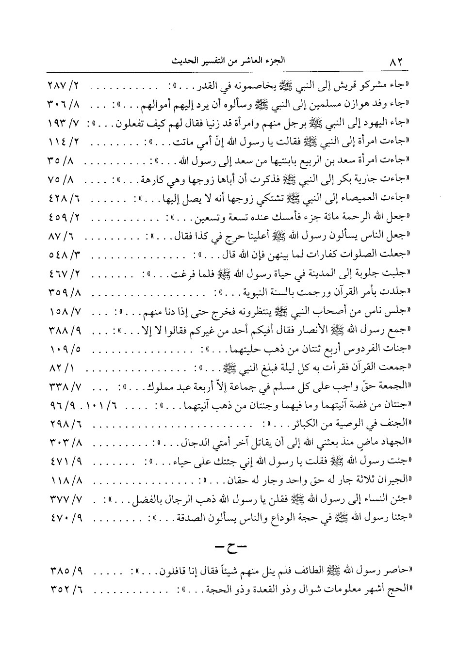 «جئن النساء إلى رسول الله صلّى الله عليه وسلم فقلن يا رسول الله ذهب الرجال بالفضل ... » : 7/ 377