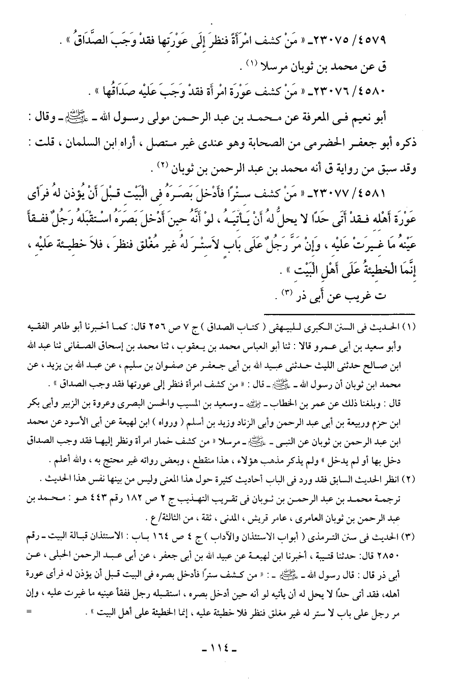 4580/ 23076 - "مَنْ كشف عَوْرَة امْرأَةٍ فقدْ وَجَبَ عَليه صَدَاقُها".