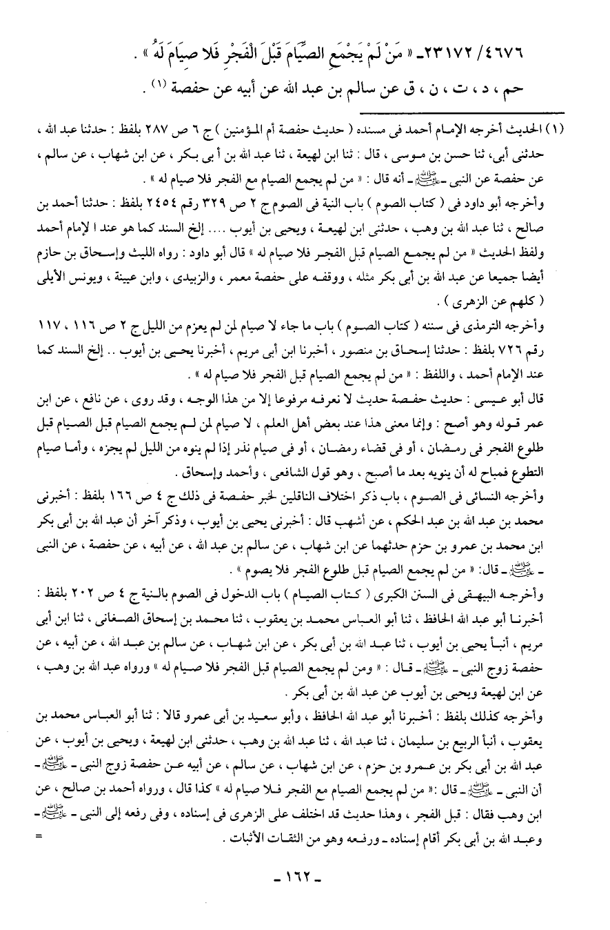 4676/ 23172 - "مَنْ لَمْ يَجْمَعِ الصِّيَامَ قَبْلَ الْفَجْرِ فَلا صِيَامَ لَهُ".