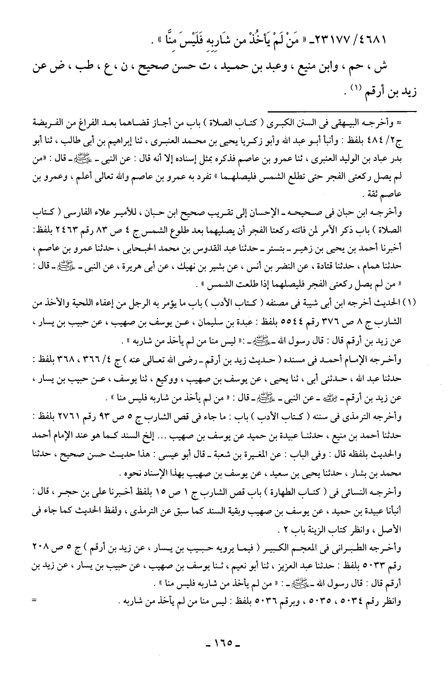 4681/ 23177 - "مَنْ لَمْ يَأخُذْ من شَارِبِهِ فَلَيسَ مِنَّا".