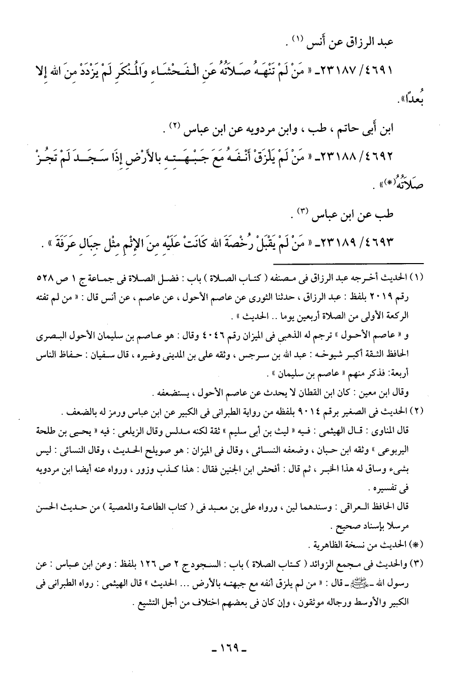 4691/ 23187 - "مَنْ لَمْ تَنْهَهُ صَلاتُهُ عَنِ الْفَحْشَاءِ وَالمُنْكَرِ لَمْ يَزْدَدْ مِنَ الله إِلا بُعدًا".