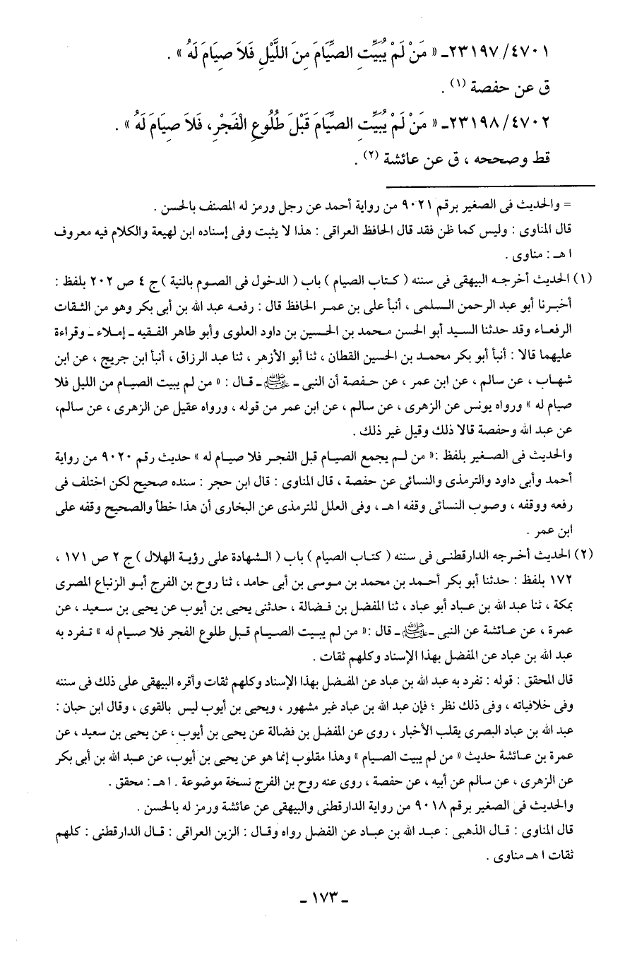 4701/ 23197 - "مَنْ لَمْ يُبَيِّتِ الصِّيَامَ مِنَ اللَّيلِ فَلَا صِيَامَ لَهُ".