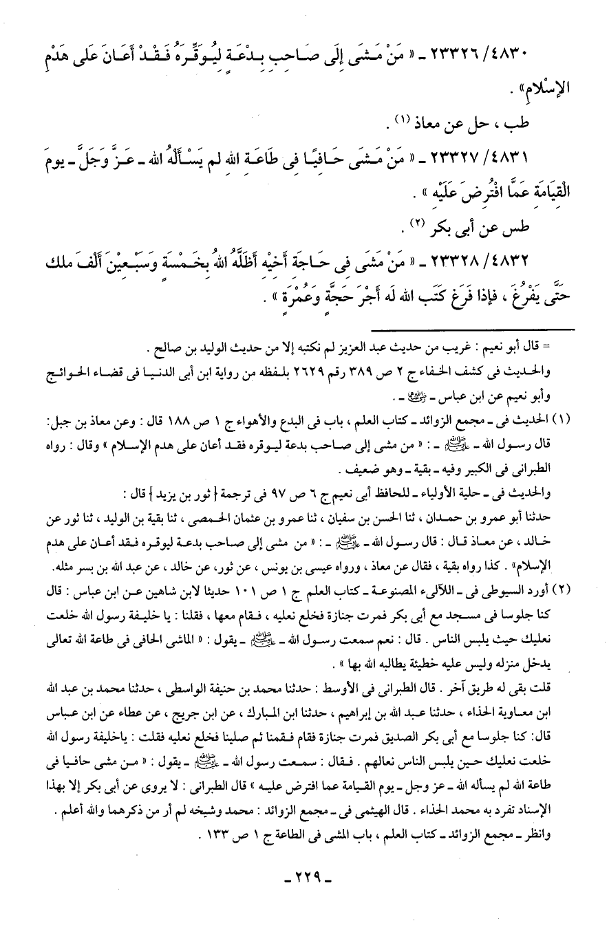 وانظر -مجمع الزوائد- كتاب العلم، باب المشي في الطاعة ج 1 ص 133.