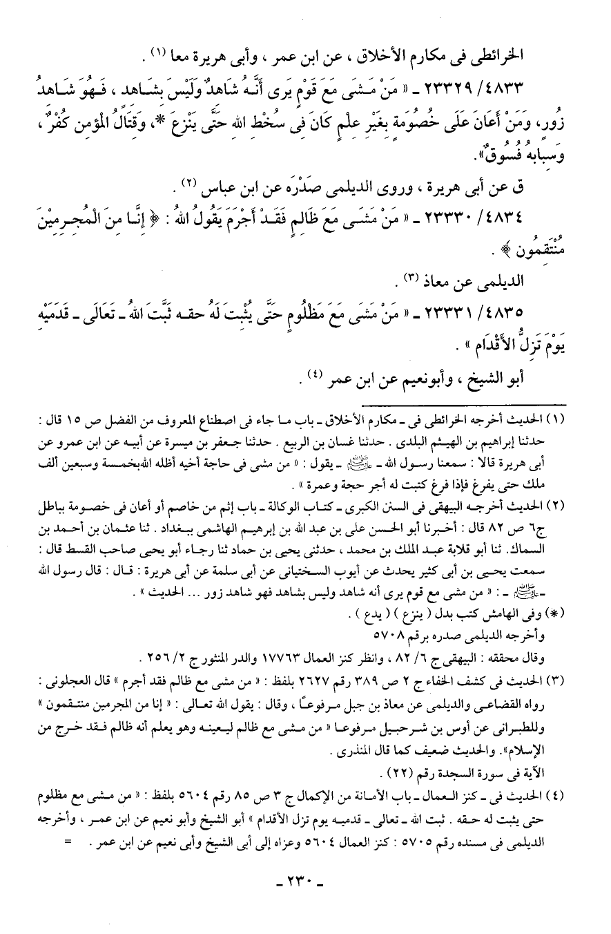 4835/ 23331 - "مَنْ مَشَى مَعَ مَظلُومٍ حَتَّى يُثْبتَ لَهُ حقه ثَبَّتَ اللهُ -تَعَالى- قَدَمَيه يَوْمَ تَزِلُّ الأَقْدَام".