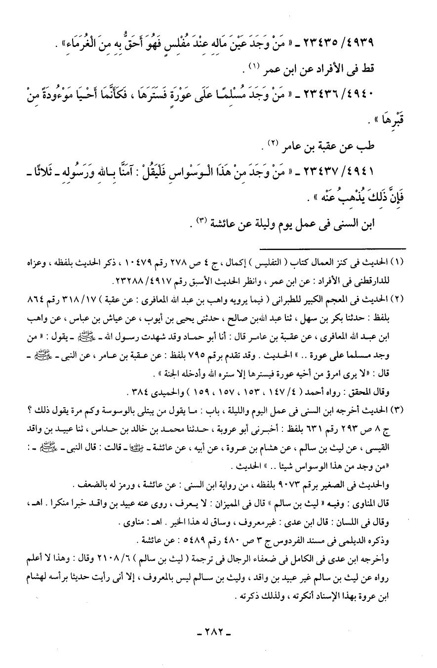 (¬1) الحديث في كنز العمال كتاب (التفليس) إكمال، ج 4 ص 278 رقم 10479، ذكر الحديث بلفظه، وعزاه للدارقطنى في الأفراد: عن ابن عمر، وانظر الحديث الأسبق رقم 4917/ 23288.