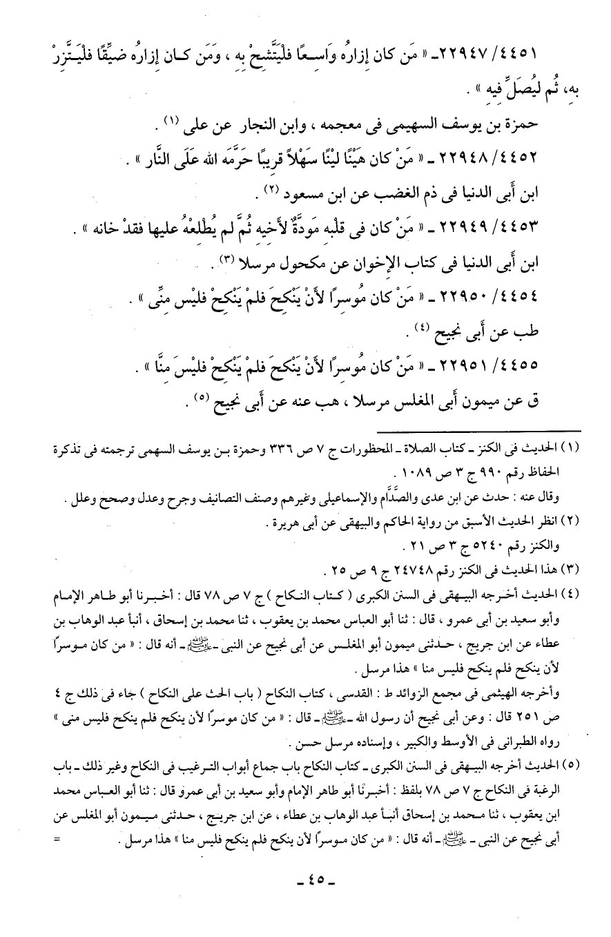 4455/ 22951 - "مَنْ كان مُوسِرًا لأَنْ يَنْكحَ فلمْ يَنْكِحْ فليسَ مِنَّا".
