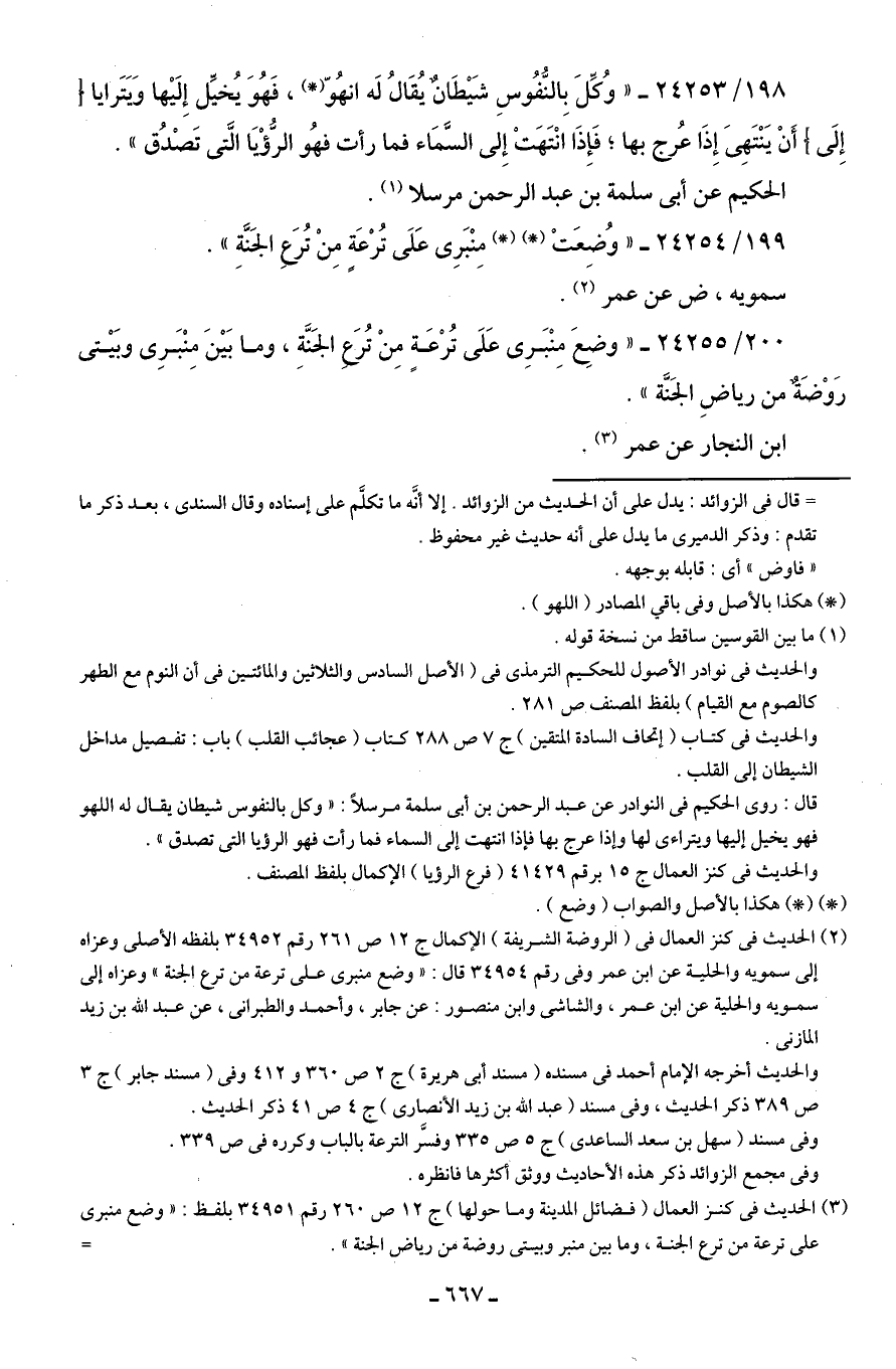 199/ 24254 - "وُضِعَتْ (*) (*) مِنْبَرِي عَلَى تُرْعَةٍ مِنْ تُرَعِ الجَنَّةِ".