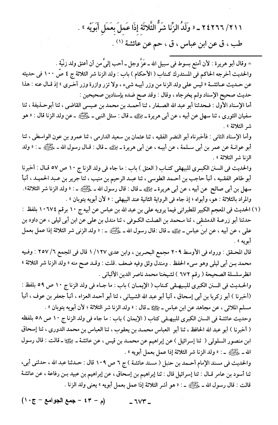 211/ 24266 - "وَلَدُ الزِّنا شَرُّ الثَّلاثَةِ إِذَا عَمِلَ بِعَمَلِ أَبَوَيه".