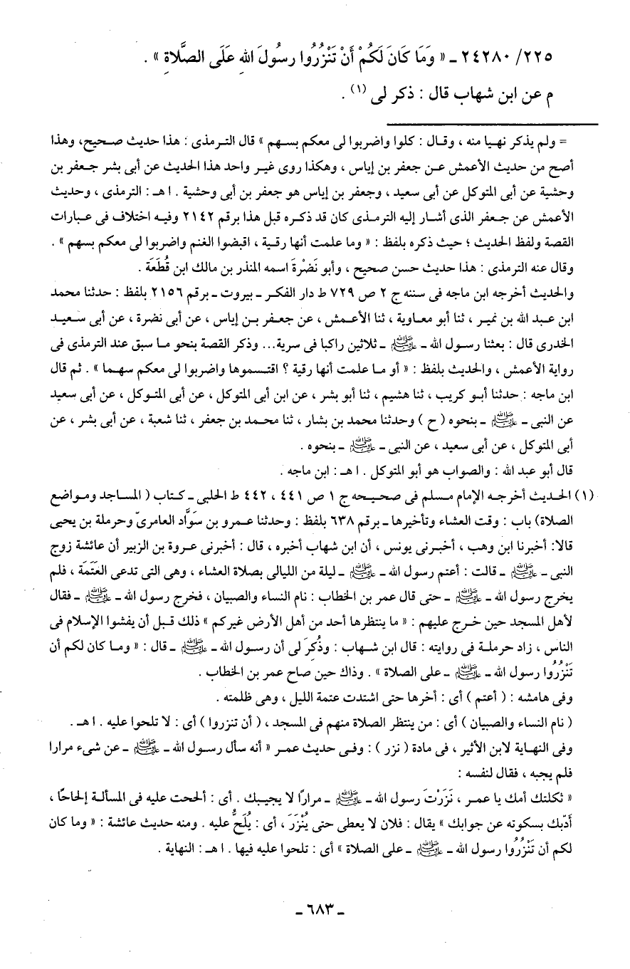 225/ 24280 - "وَمَا كَانَ لَكُمْ أَنْ تَنْزُرُوا رسُولَ اللهِ عَلَى الصَّلاةِ".