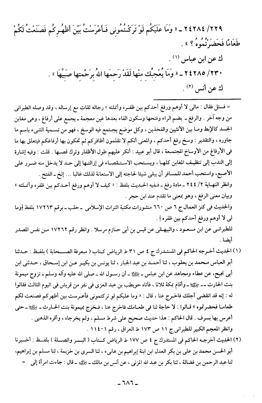 229/ 24284 - "وَمَا عَلَيكُم لَوْ تَرَكْتُمُونِي فَأَعْرَسْتُ بَينَ أَظهُرِكُم فَصَنَعْتُ لَكُمْ طَعَامًا فَحَضَرْتُمُوهُ؟ ".