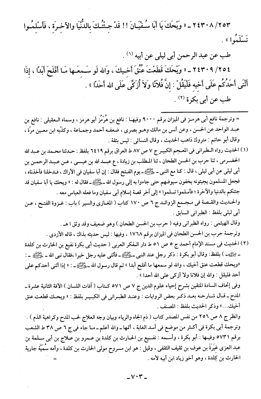 253/ 24308 - "وَيحَكَ يَا أَبَا سُفْيَانَ! ! قَدْ جِئْتُكَ بِالدُّنْيَا والآخِرَةِ، فَأَسْلِمُوا تَسْلَمُوا".