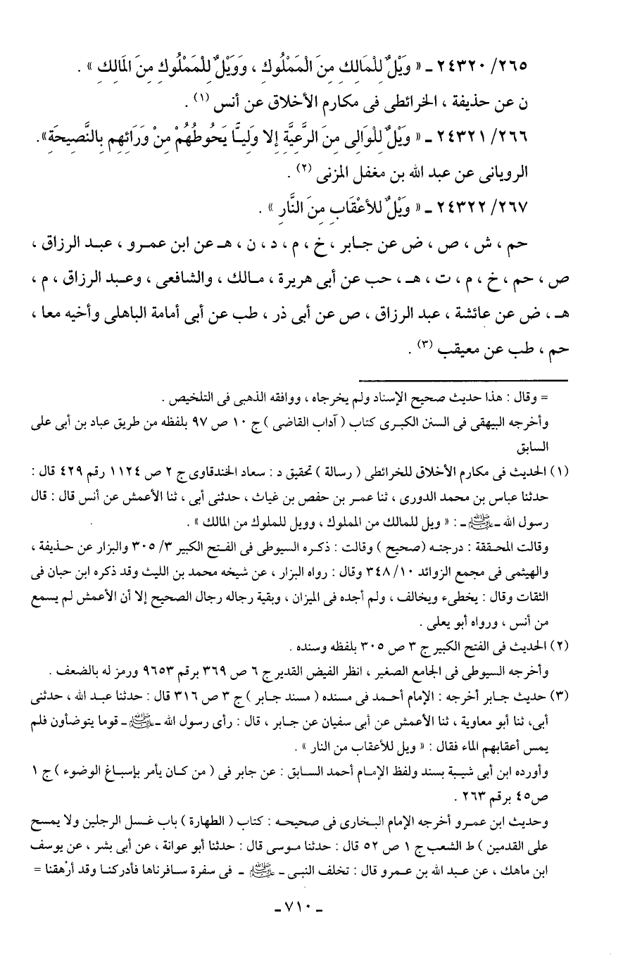 265/ 24320 - "وَيلٌ لِلْمَالِكِ مِنَ الْمَمْلُوكِ، وَوَيلٌ لِلْمَمْلُوكِ مِنَ المَالِكِ".