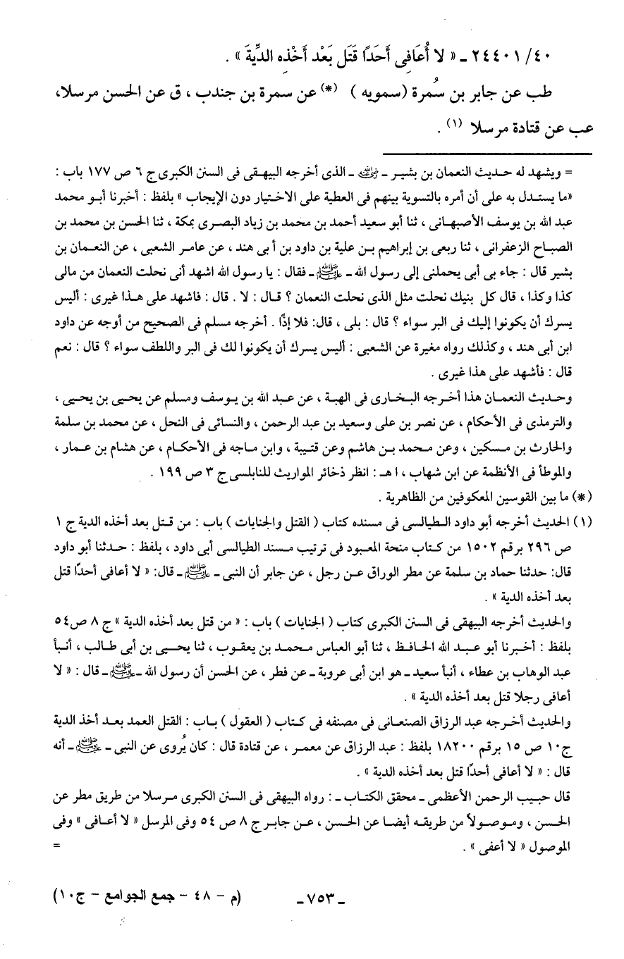 40/ 24401 - "لا أُعَافِي أَحَدًا قَتَل بَعْد أَخْذِه الدِّيةَ".