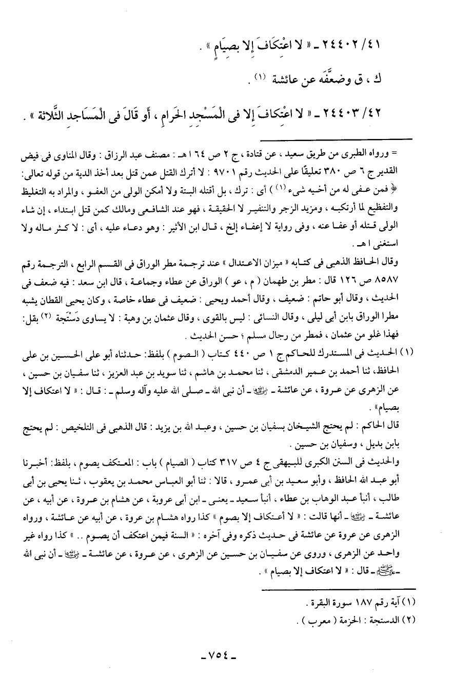 41/ 24402 - "لا اعْتِكَافَ إِلا بصِيَامٍ".