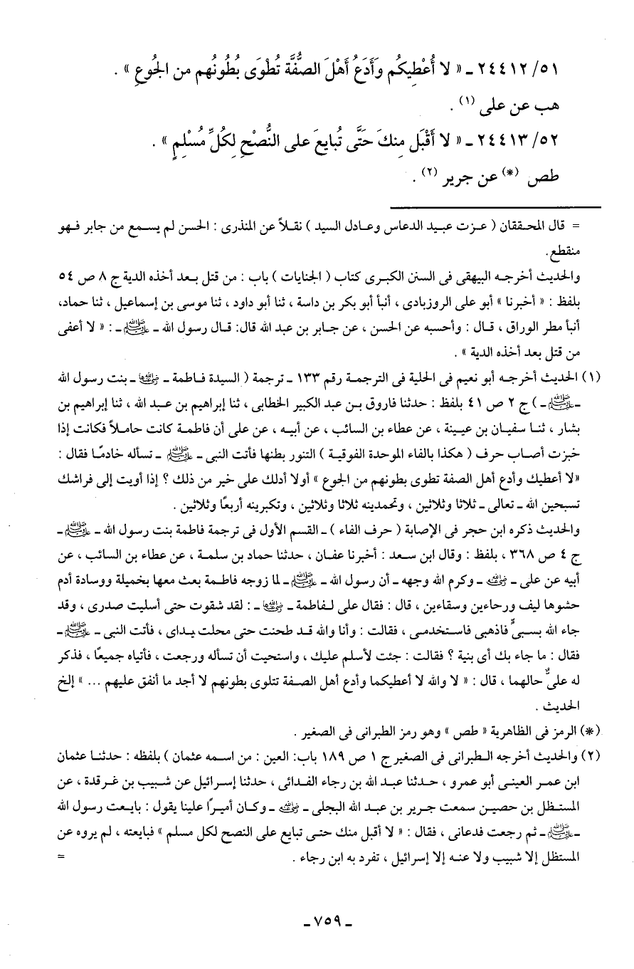 51/ 24412 - "لا أُعْطِيكُم وَأَدَعُ أَهْلَ الصُّفَّة تُطوَى بُطُونُهم من الجُوعِ".