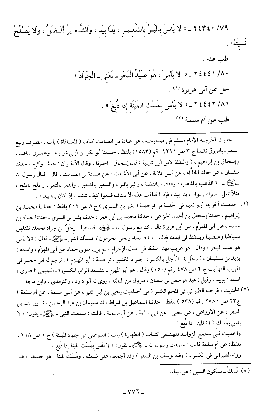 80/ 24441 - "لا بَأسَ، هُوَ صَيدُ الْبَحْرِ -يَعْنِي- الْجَرَادَ".