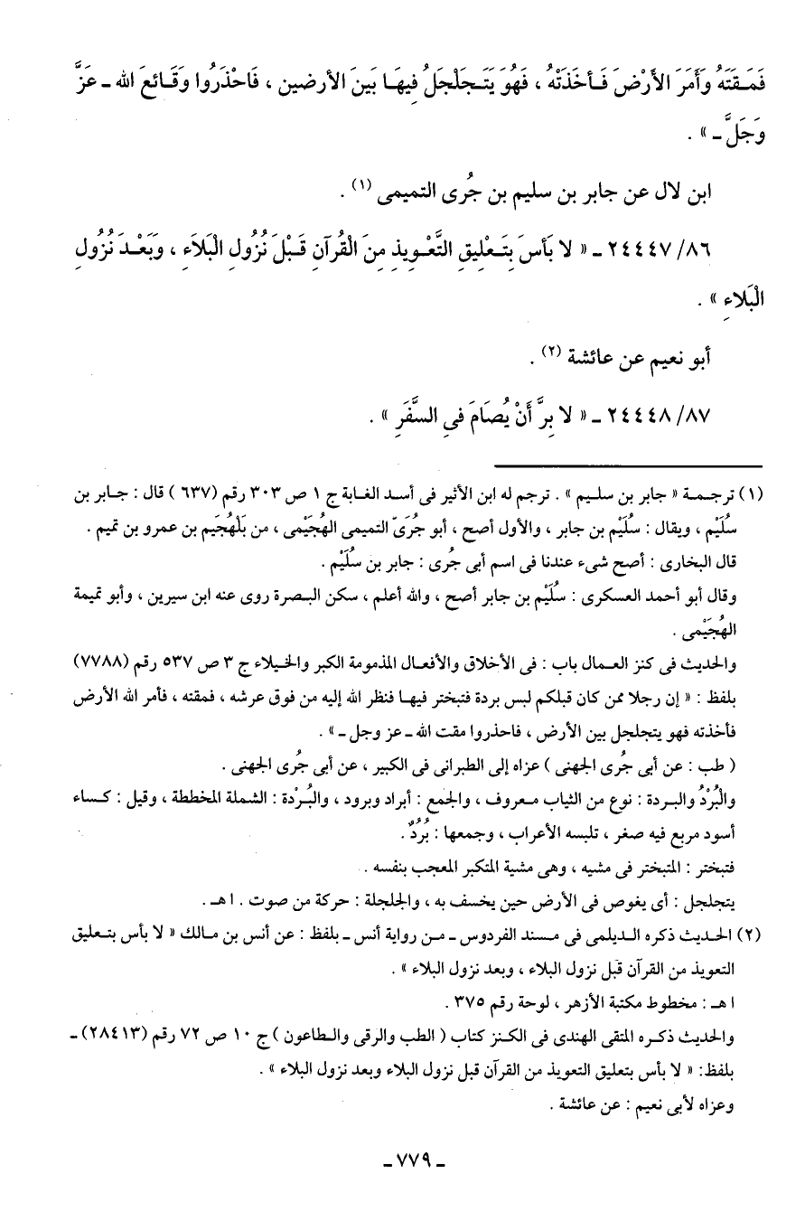 86/ 24447 - "لا بَأسَ بِتَعْلِيقِ التَّعْويذِ مِنَ الْقُرآنِ قَبْلَ نُزُولِ الْبَلاءِ، وَبَعْدَ نُزُولِ الْبَلاءِ".