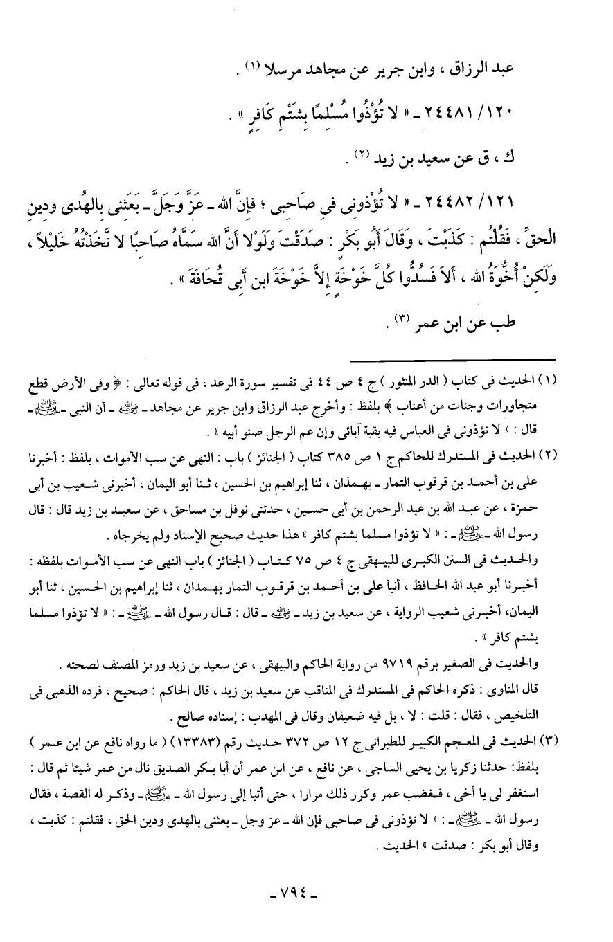 120/ 24481 - "لا تُؤْذُوا مُسْلِمًا بِشَتْمِ كَافِرٍ".