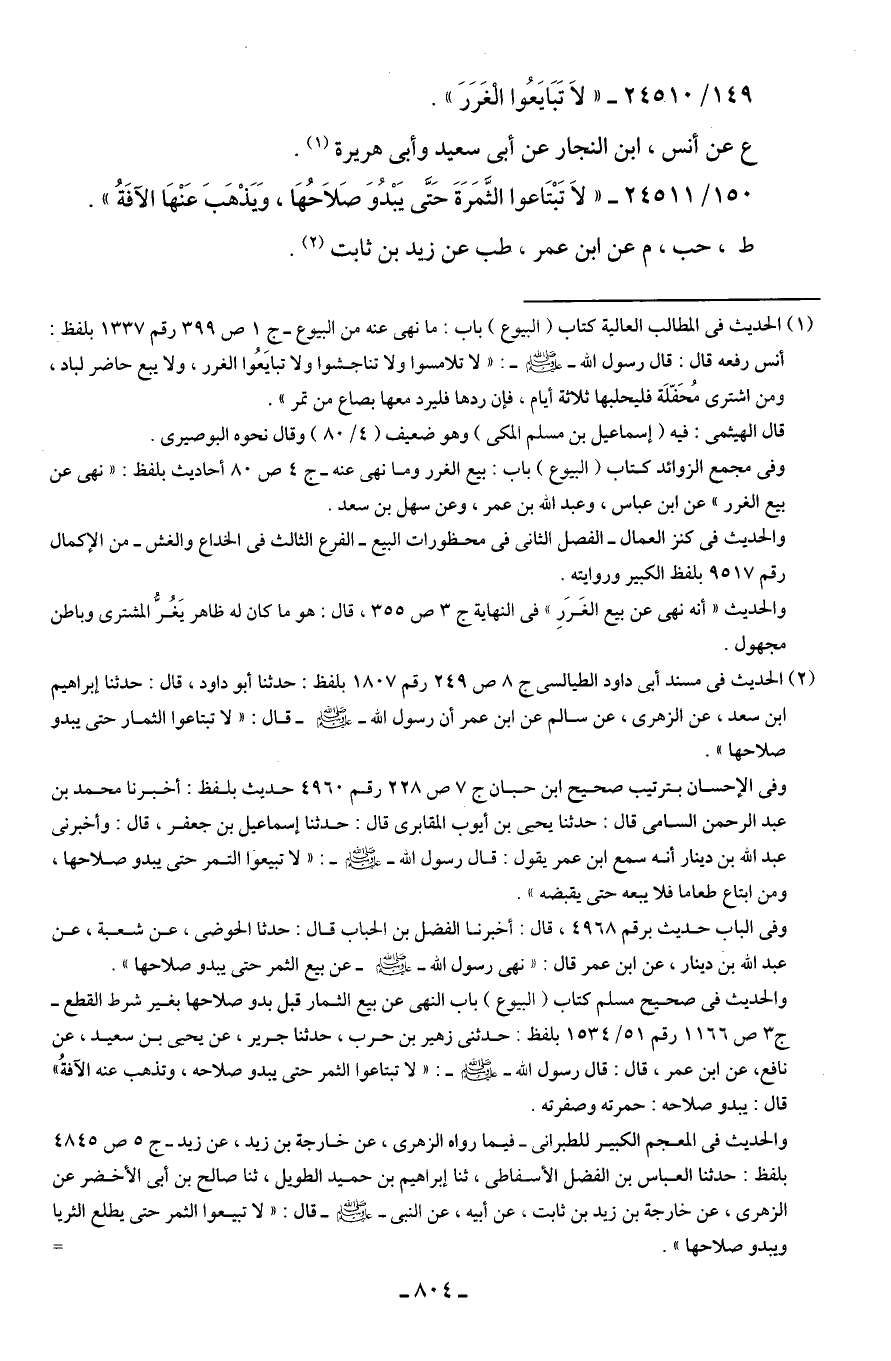 149/ 24510 - "لَا تَبَايَعُوا الْغَرَرَ".