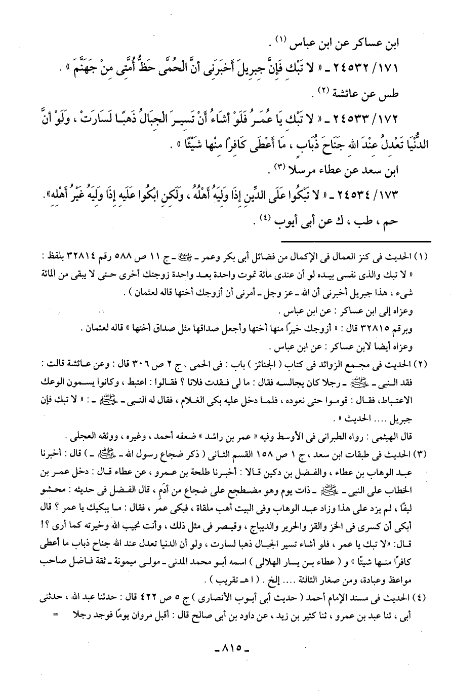 173/ 24534 - "لا تَبْكُوا عَلَى الدِّينِ إِذَا وَلِيَهُ أَهْلُهُ، وَلَكِنِ ابْكُوا عَلَيهِ إِذَا وَلِيَهُ غَيرُ أَهْلِهِ".