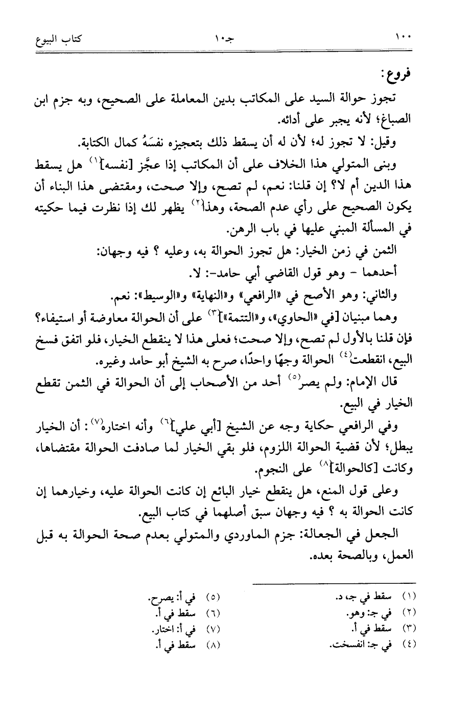 الجعل في الجعالة: جزم الماوردي والمتولي بعدم صحة الحوالة به قبل العمل، وبالصحة بعده.