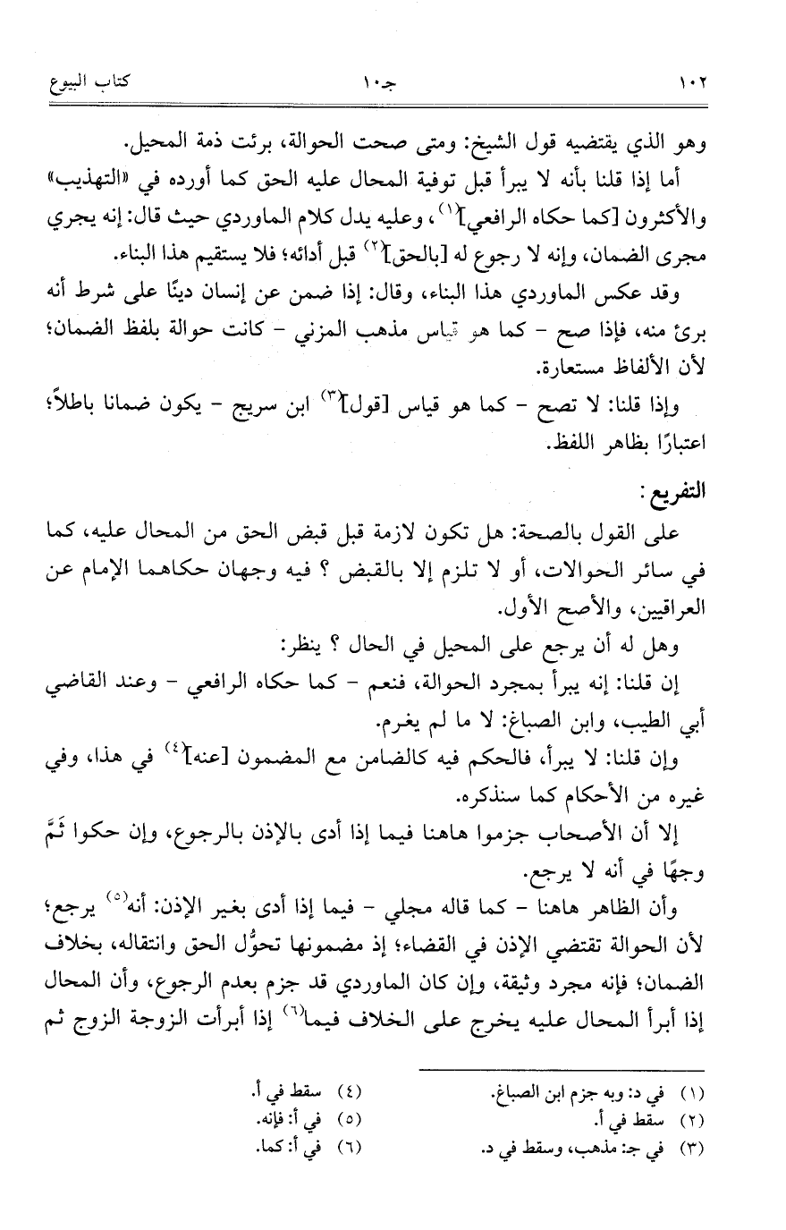 وأن الظاهر هاهنا – كما قاله مجلي – فيما إذا أدى بغير الإذن: أنه يرجع؛ لأن الحوالة تقتضي الإذن في القضاء؛ إذ مضمونها تحوُّل الحق وانتقاله، بخلاف الضمان؛ فإنه مجرد وثيقة، وإن كان الماوردي قد جزم بعدم الرجوع، وان المحال إذا أبرأ المحال عليه يخرج على الخلاف فيما إذا أبرأت الزوجة الزوج ثم