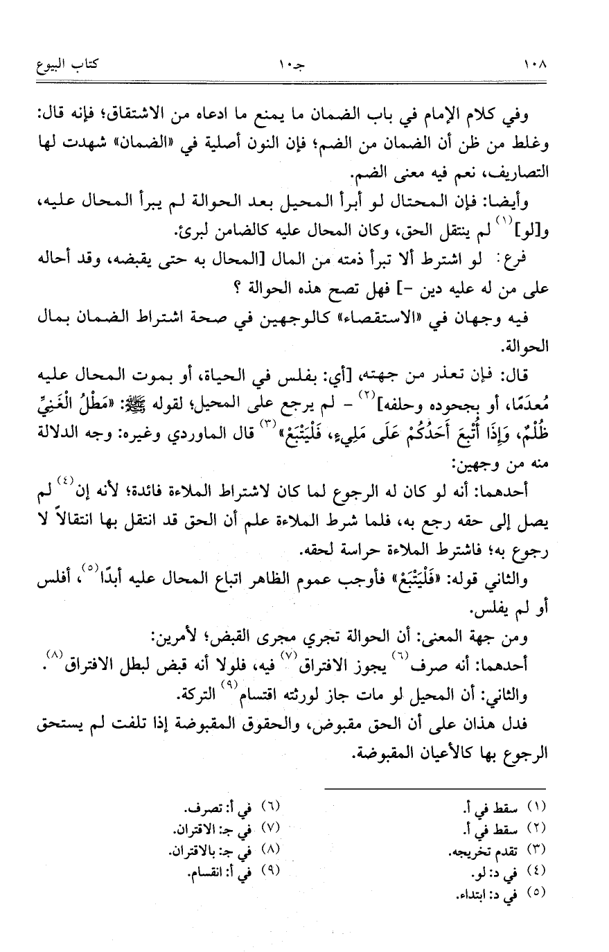 قال: فإن تعذر من جهته، [أي: بفلس في الحياة، أو بموت المحال عليه مُعدَماً، أو بجحوده وحلفه] – لم يرجع على المحيل؛ لقوله صلى الله عليه وسلم: "مَطْلُ الْغَنِيِّ ظُلْمٌ، وَإِذَا أُتْبعَ أَحَدُكُمْ عَلَى مَلِيءٍ، فَلْيَتْبَعْ" قال الماوردي وغيره: وجه الدلالة منه من وجهين: