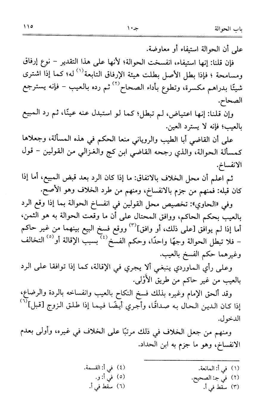 على أن القاضي أبا الطيب والروياني منعا الحكم في هذه المسألة، وجعلاها كمسألة الحوالة، والذي رجحه القاضي ابن كج والغزالي من القولين – قول الانفساخ.