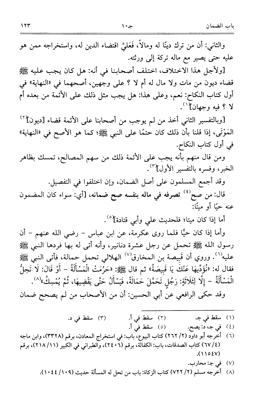 وقد حكى الرافعي عن أبي الحسين: أن من الأصحاب من لم يصحح ضمان
