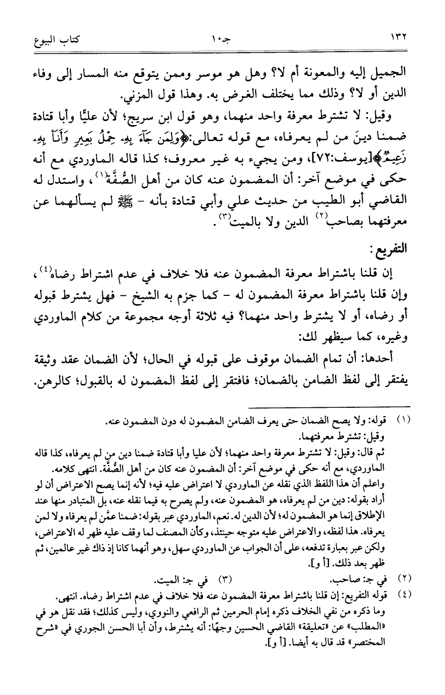 وقيل: لا تشترط معرفة واحد منهما، وهو قول ابن سريج؛ لأن عليًّا وأبا قتادة ضمناً دينَ من لم يعرفاه، مع قوله تعالى: {وَلِمَنْ جَاءَ بِهِ حِمْلُ بَعِيرٍ وَأَنَا بِهِ زَعِيمٌ} [يوسف: 72]، ومن يجيء به غير معروف؛ كذا قاله الماوردي مع أنه حكى في موضع آخر: أن المضمون عنه كان من أهل الصُّفَّة، واستدل له القاضي أبو الطيب من حديث علي وأبي قتادة بأنه – صلى الله عليه وسلم لم يسألهما عن معرفتهما بصاحب الدين ولا بالميت.