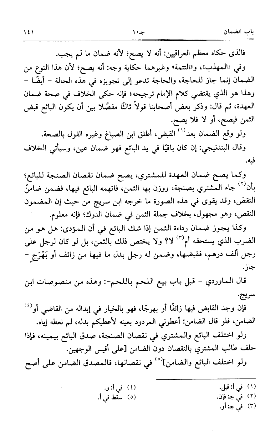 وكذا يجوز ضمان رداءة الثمن إذا شك البائع في أن المؤدى: هل هو من الضرب الذي يستحقه أم لا؟ ولا يختص ذلك بالثمن، بل لو كان لرجل على رجل ألف درهم، فقبضها، وضمن له رجل بدل ما في من زائف أو بَهْرَجٍ – جاز.