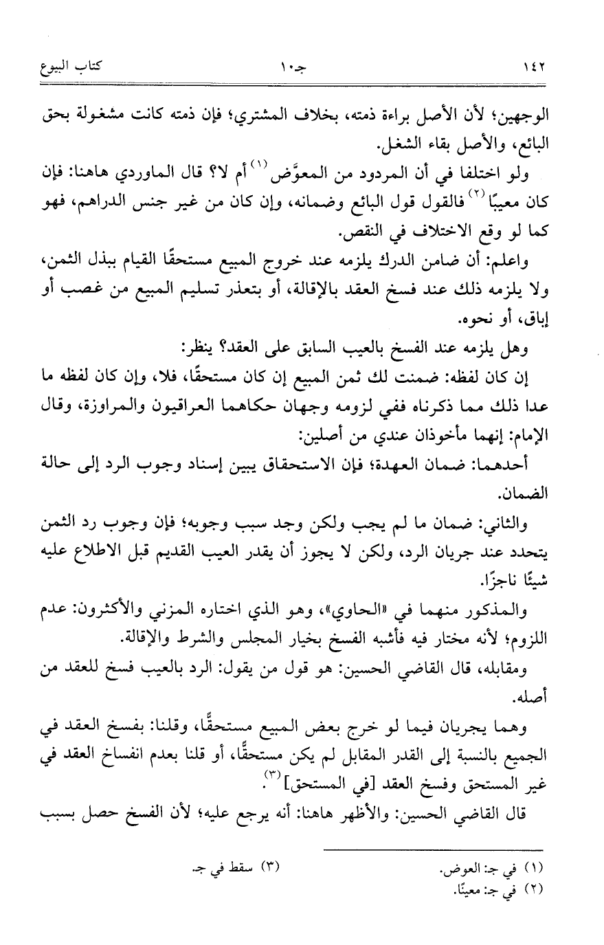 والثاني: ضمان ما لم يجب ولكن وجد سبب وجوبه؛ فإن وجوب رد الثمن يتحدد عند جريان الرد، ولكن لا يجوز أن يقدر العيب القديم قبل الاطلاع عليه شيئاً ناجزاً.