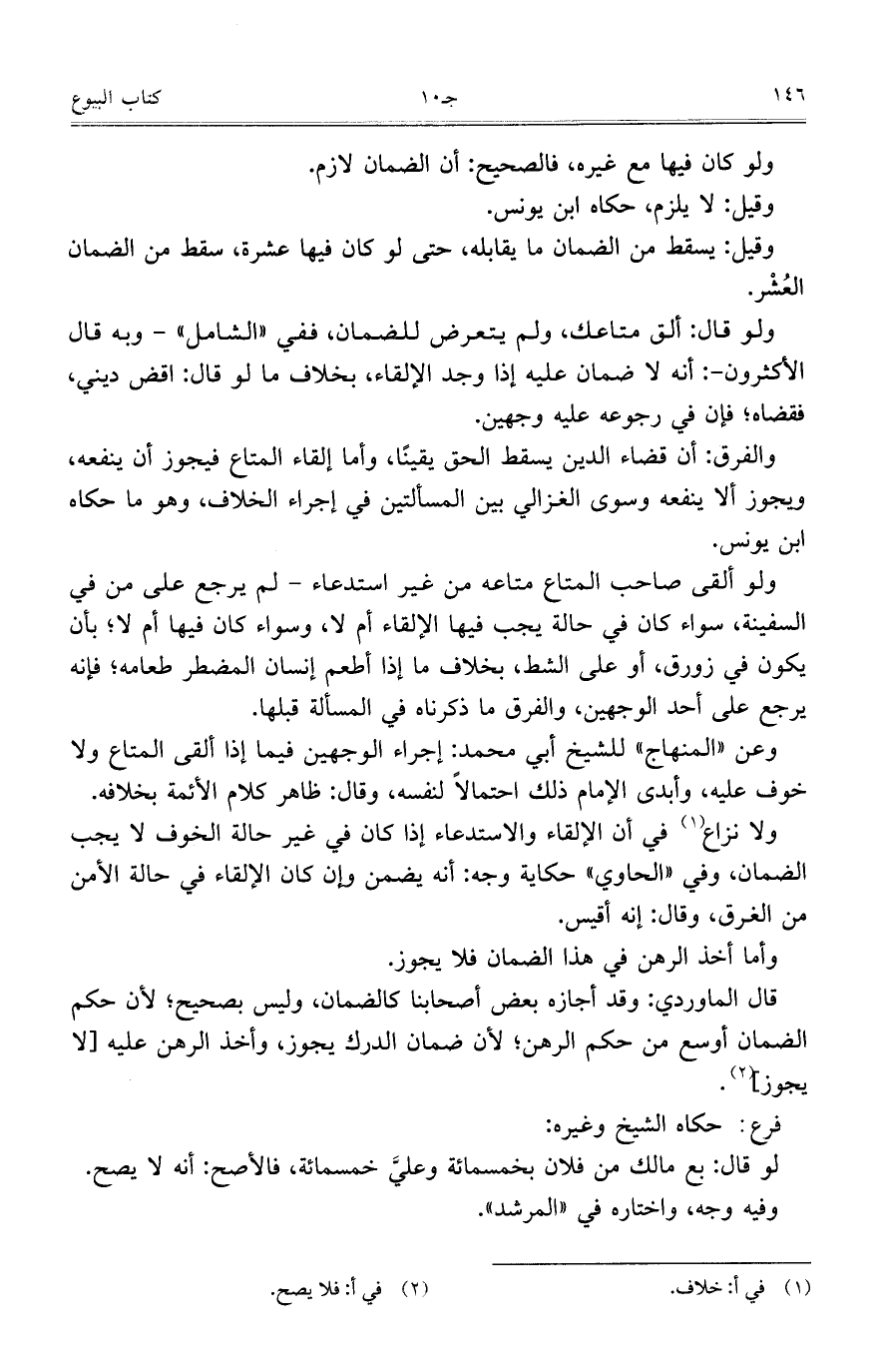 وعن "المنهاج" للشيخ أبي محمد: إجراء الوجهين فيما إذا ألقى المتاع ولا خوف عليه، وأبدى الإمام ذلك احتمالاً لنفسه، وقال: ظاهر كلام الأئمة بخلافه.