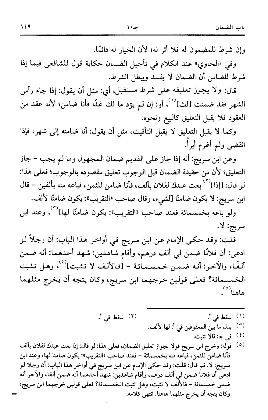 وفي "الحاوي" عند الكلام في تأجيل الضمان حكاية قول للشافعي فيما إذا شرط للضامن أن الضمان لا يفسد ويبطل الشرط.