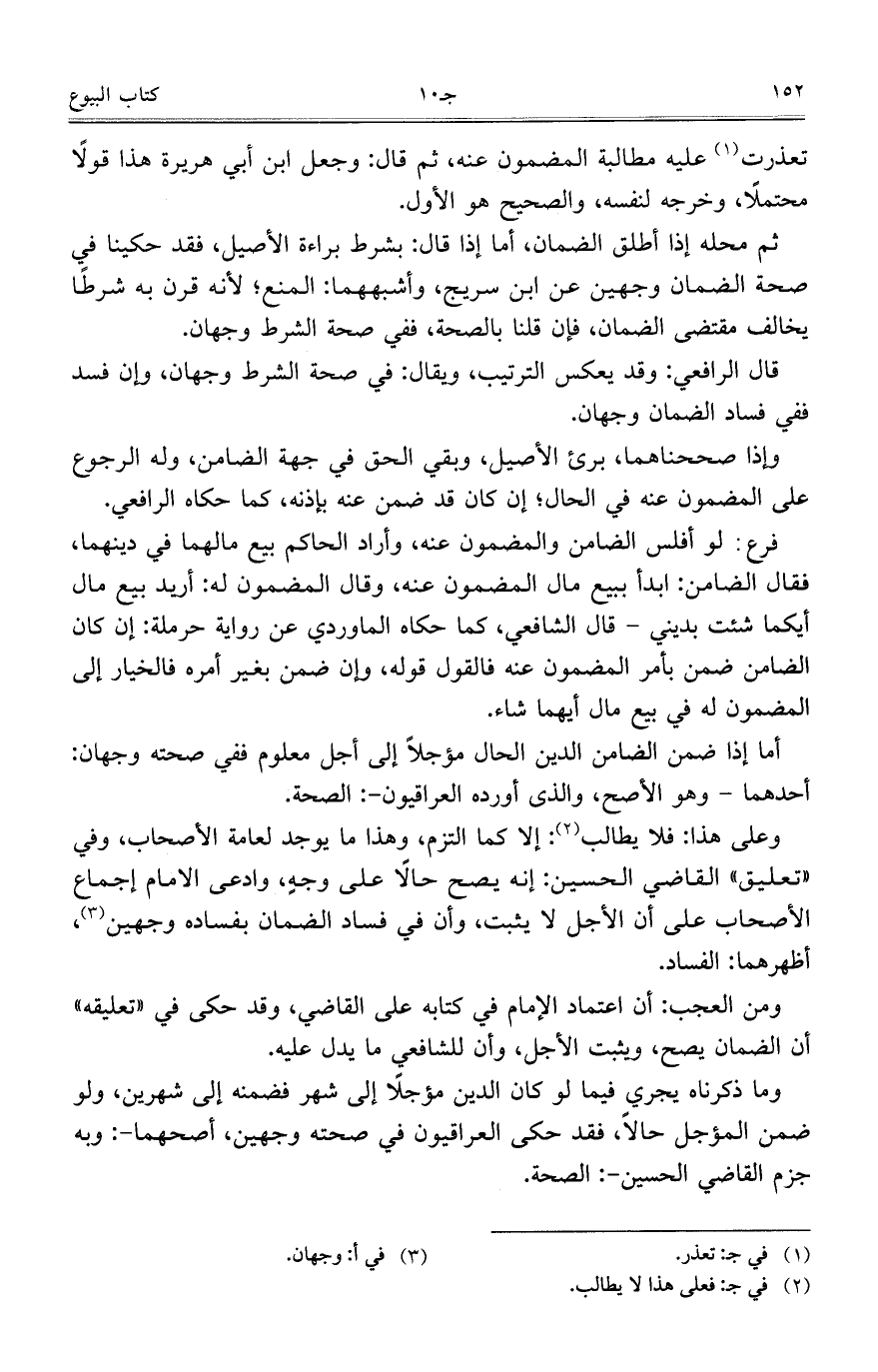 ومن العجب: أن اعتماد الإمام في كتابه على القاضي، وقد حكى في "تعليقه" أن الضمان يصح، ويثبت الأجل، وأن للشافعي ما يدل عليه.